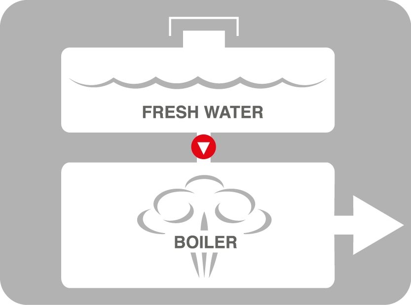 In the basic version of steam generators, the boiler works also as a reservoir for fresh water. With a load of water you can work about 2 hours (depending on the model). The boiler is always made of anticorrosive and anti-scale 304 stainless steel in order to guarantee duration in time of the steam generator.